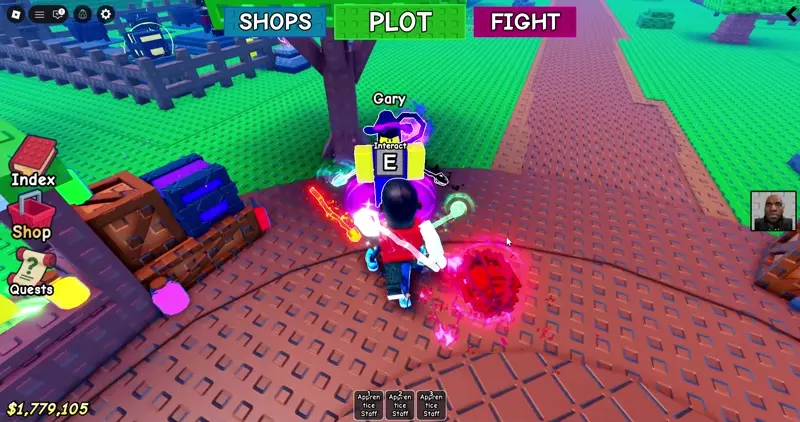 Simply walk up and ask him to buy a Staff. Each Staff can be purchased using $ or Robux.