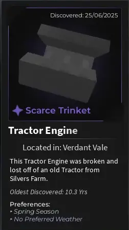 Silver tasks the player with digging up some Tractor Parts, feeding a pig and digging up various items around Verdant Vale. The Tractor Items are as follows: