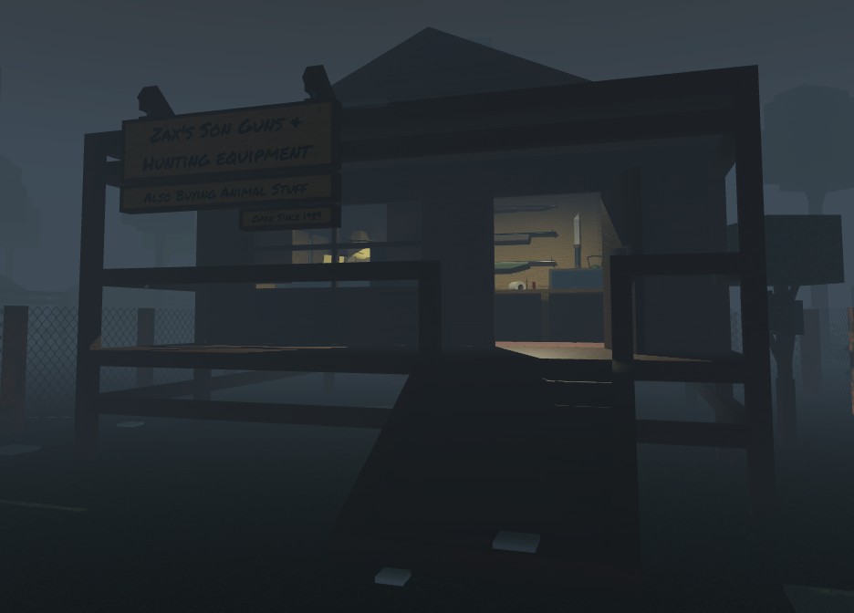 - Stores: Spend your hard-earned cash to upgrade your loadout or to purchase meat from the butcher.