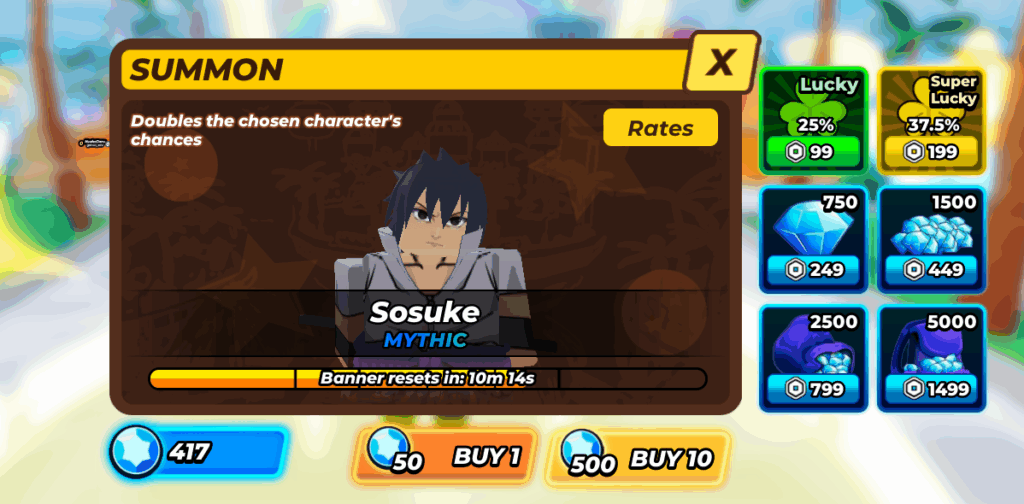 - 1 Summon = 50 gems