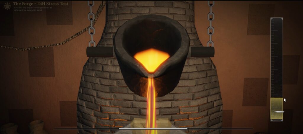 Forging is one of the core mechanics in The Forge. Players can use gathered Ores to craft Weapons and Armor by completing a Forging mini-game.
