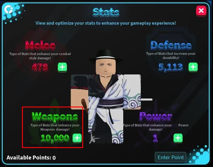 This can be done by allocating the Points a player receives upon Leveling Up to the Weapons Stat pictured Below.