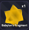 | Babylon’s Fragment | ![]() | Dropped from the Gilgamesh Boss. | Gilgamesh |
