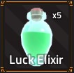 | Luck Elixir | ![]() | Crafted at the Blacksmith NPC in exchange for 10 Clover Leaves. | Doubles the players luck for 1 minute. |